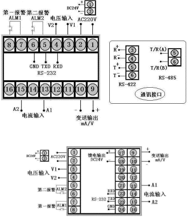 例:如仪表要做上、下限报警就不能有变送输出。如要变送输出那只能有一个上限报警。